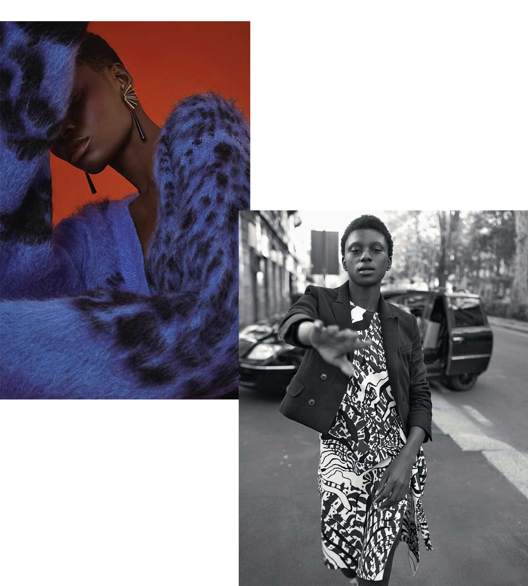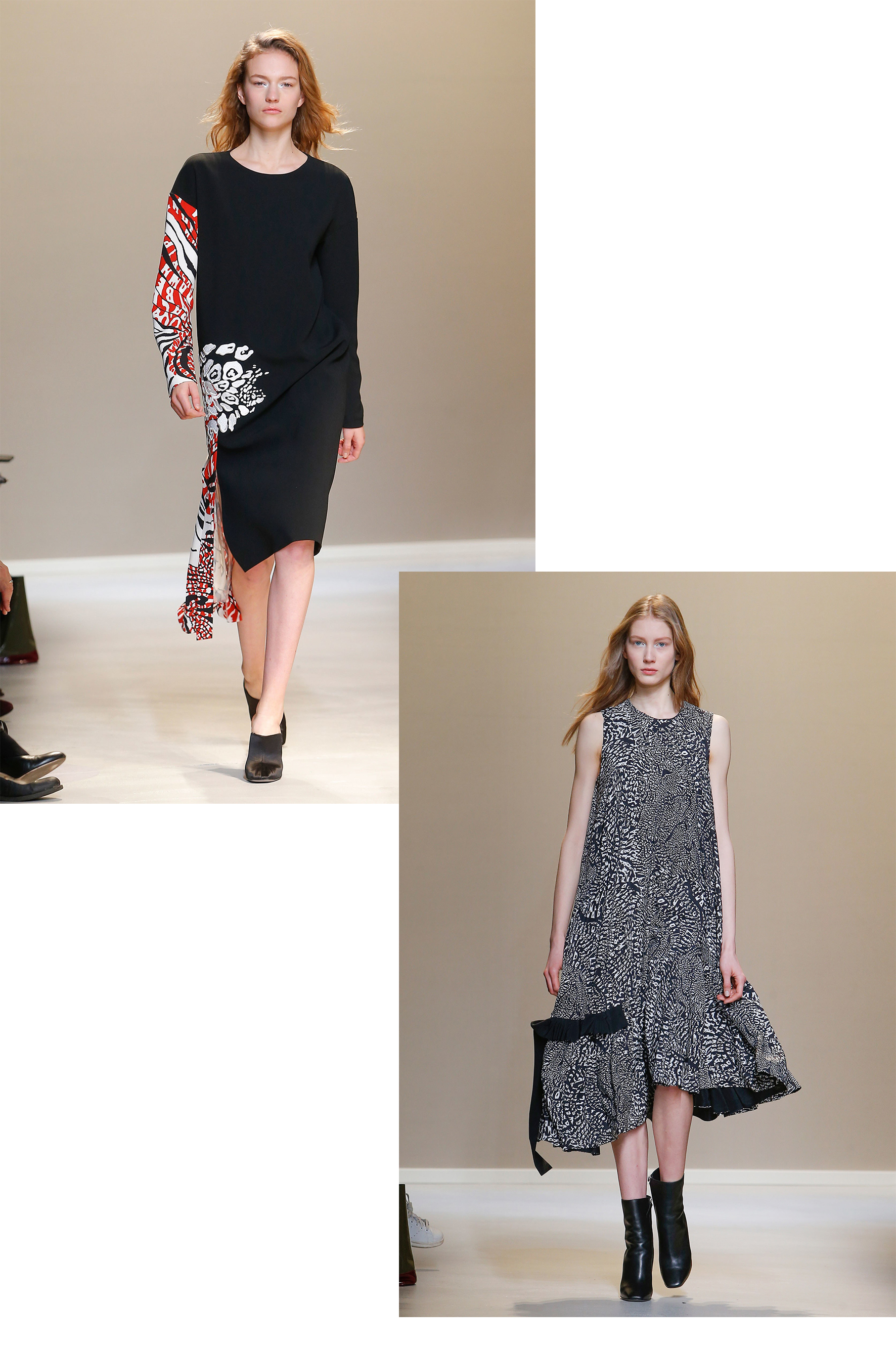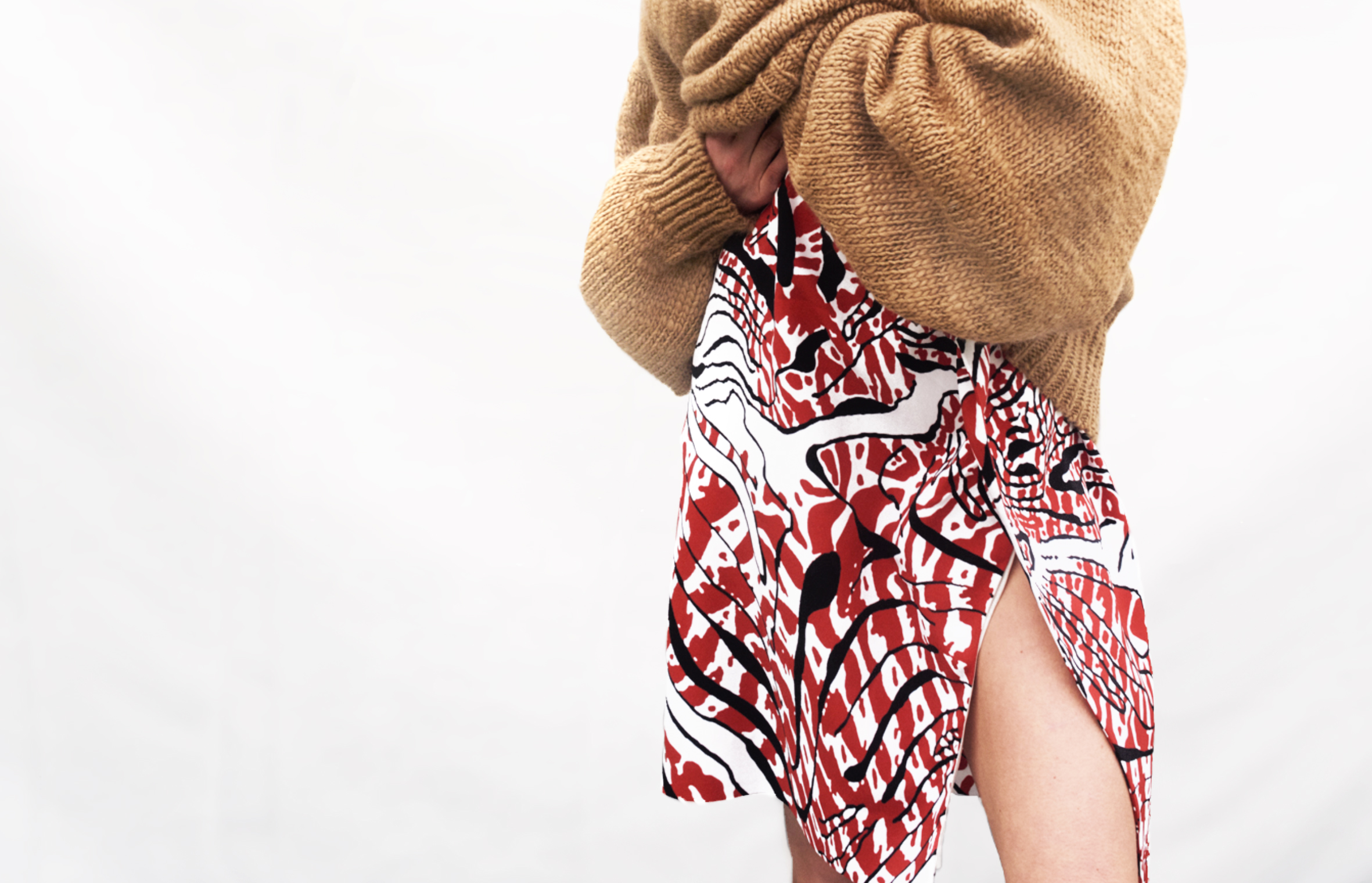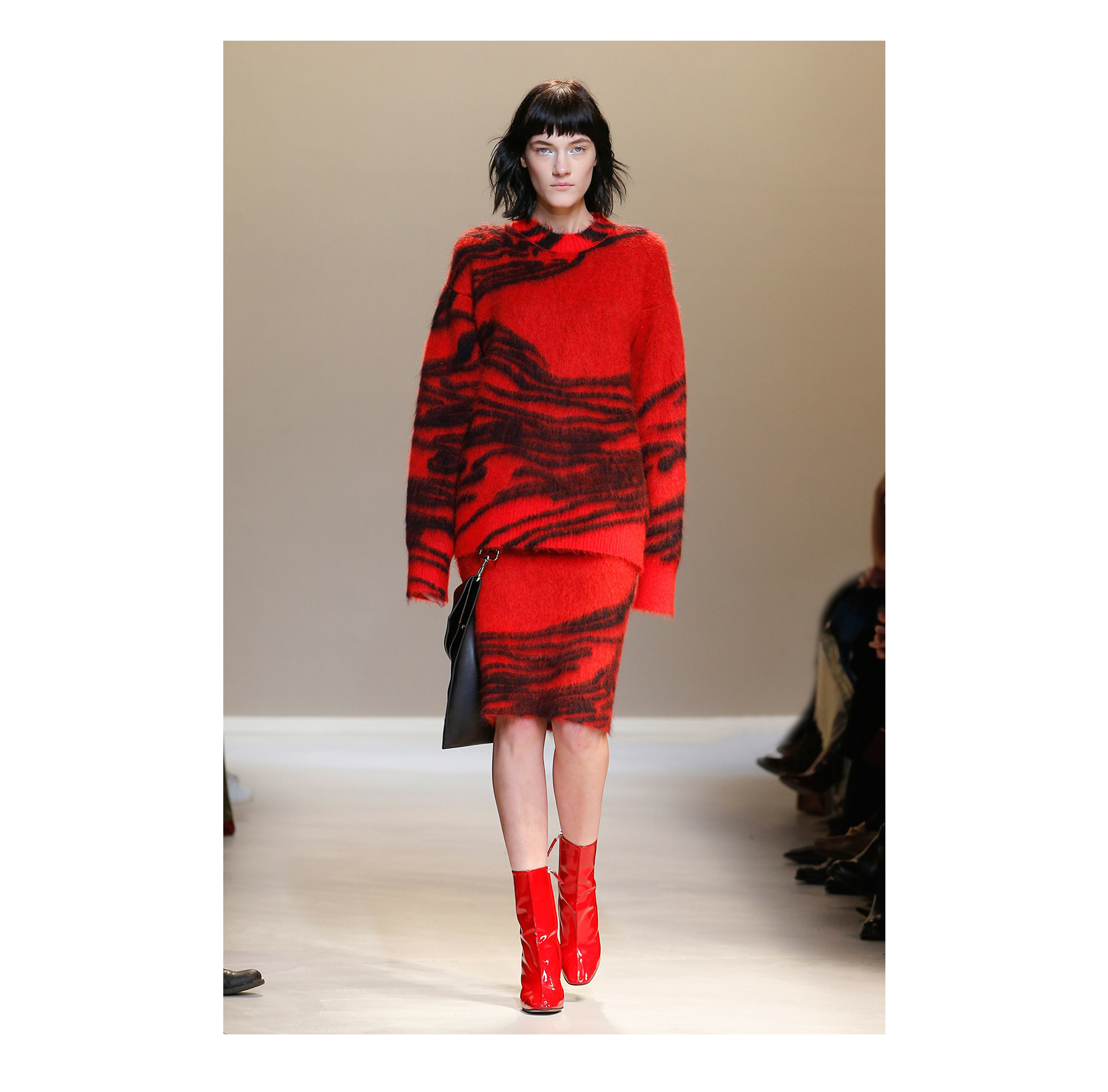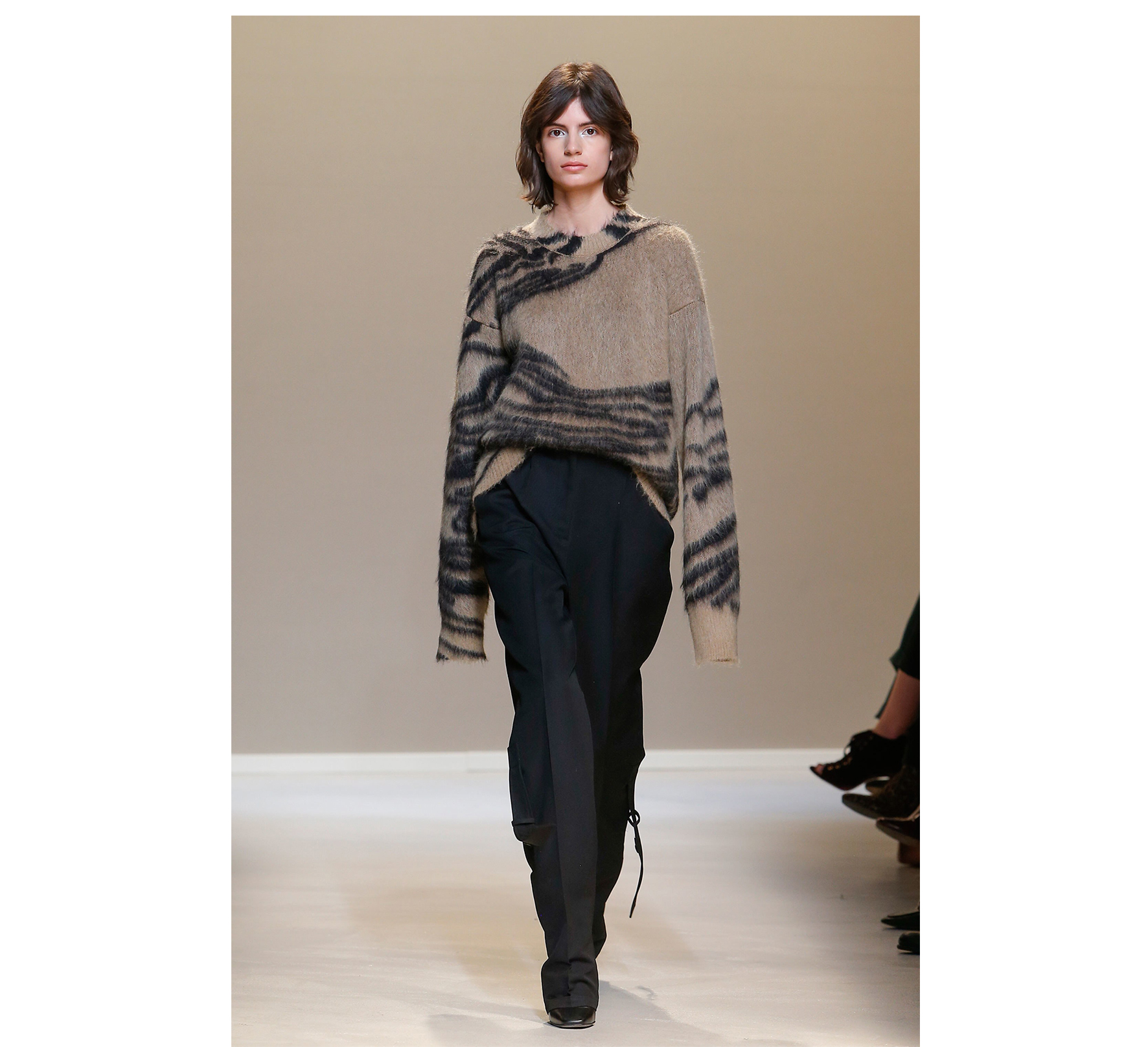Sharp, masculine and glamorously contemporary. That was the key point for me in developing this season‘s abstract animal print. The classic Krizia pleat is gracefully attached via graphic embroidery in the same graphic style. A subtler version in brushed mohair is patterned with a diffused version of the print and an even more extrapolated effect you can see at the embroidered heavy wool.