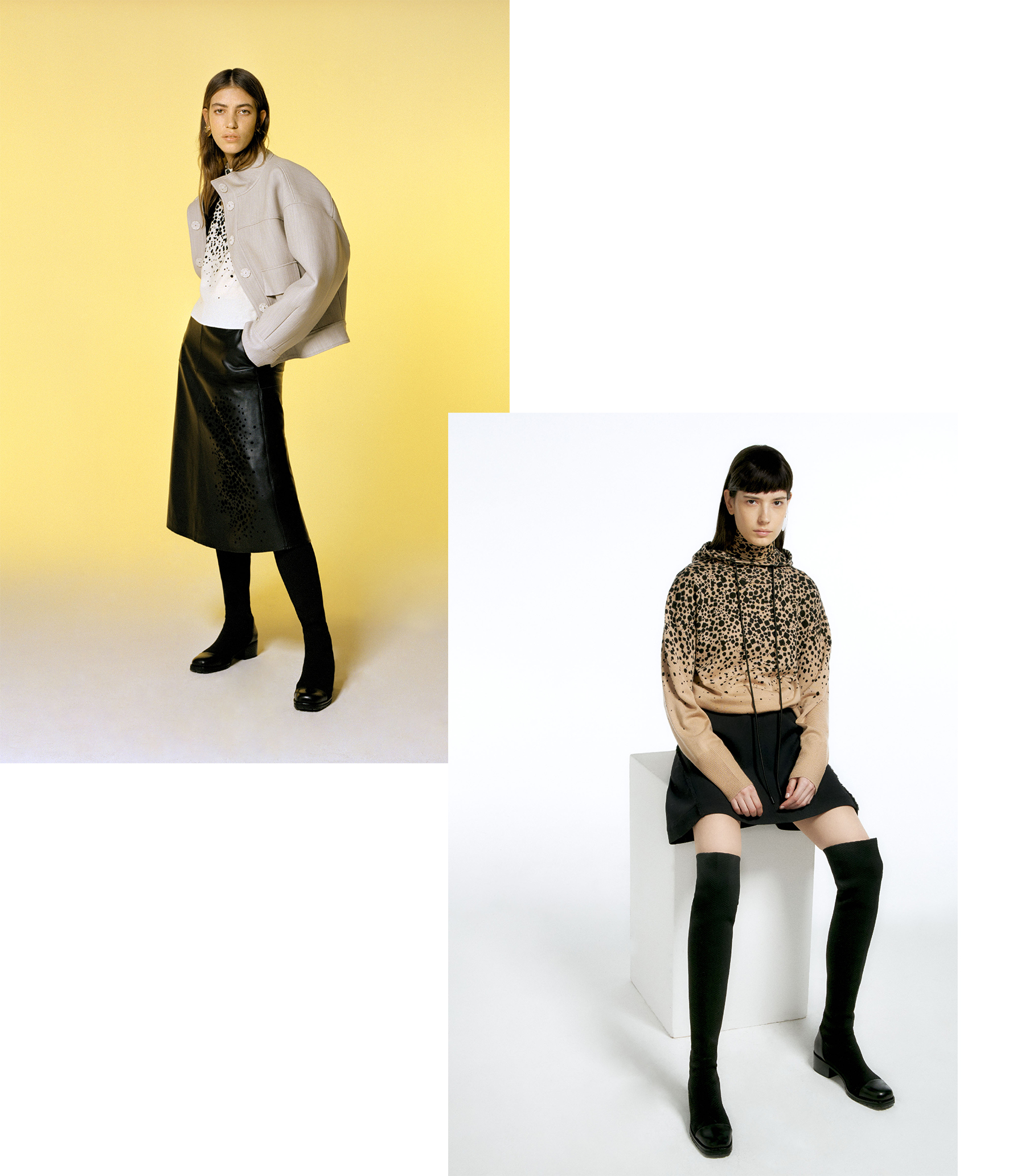 My last work for Krizia was in the spirit of bold color gradients, punchy sport graphic and witty twists on everlasting leopard prints. As Krizia is a sophisticated Italian brand with recognition for mostly its 80’s creations, I wanted to build up on that heritage with a funny contemporary approach. Historical curvy logo became a full body print, leopard elements jump around wool sweaters and leather skirts in geometric constellations both as print and embroidery.